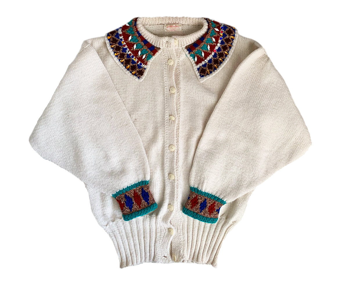 Vintage Hand Knitted Embellished Cuff and Collar Cardigan